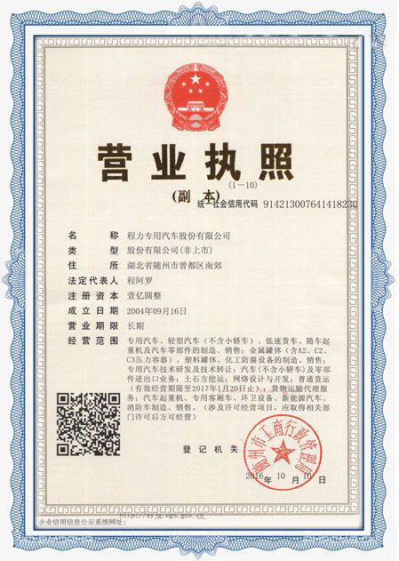 程力專用汽車股份有限公司各類專用汽車的專業(yè)廠家,大型專用汽車廠。國內(nèi)園林綠化、石油化工、市政環(huán)衛(wèi)、壓力容器專用汽車商。注冊“程力威”牌,產(chǎn)品代碼:“CLW”。東風、解放、福田、重汽、陜汽、北奔等公司的重要合作伙伴,主要從事各類專用汽車的業(yè)務(wù),同時也銷售各大型廠家的整車及配件。公司擁有自行出口權(quán),其主導(dǎo)品種有灑水車系列、吸污(吸糞)車系列、垃圾車系列、掃地車系列、油罐加(運)油車系列、高空作業(yè)車系列、清障車系列、隨車吊系列、自卸車系列、教練車系列、半掛車系列、化工車系列、消防車系列、廂式(冷藏車)系列、牽引車系列、粉粒物料車系列、攪拌車系列、壓力容器系列、專用車配件等十八大系列300多個品種車型。同時批發(fā)東風、解放、楚風各種二類底盤。